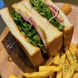 いただいたのは、見た目にも華やかでボリューム満点のクラブハウスサンド。