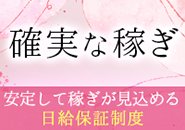 当店では未経験者、経験者問わず安心して稼いでいただく為の日給保証金制度がございます、稼ぎが保証を割る事は勿論無いのですが少しでも安心してお仕事に取り組めたらと思いこの制度を導入しました |