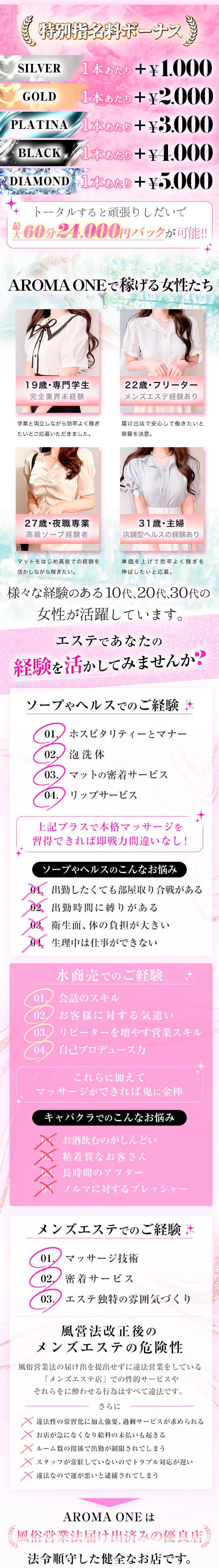 アロマワンに入店が決まったキャスト様全員に下記のバックを保証します( ^ω^ )
