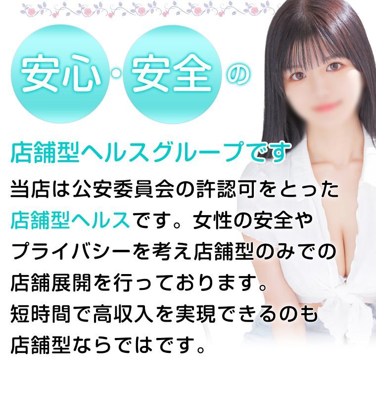 A当店は店舗型ですので車でお客様の自宅に行くことやホテルに行くこともありませんのでご安心ください。スタッフが同じ店内にいて案内前にお客様の確認も対面でおこなっていますので大丈夫です。風俗の職種の中でも始めやすいと思いますのでお気軽にご相談ください。