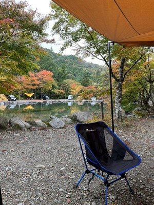 持ち物は椅子とタープとタバコだけ。