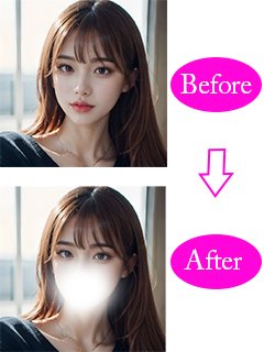 具体的には、目から上は出し、鼻から下は白いぼかしをかけます。