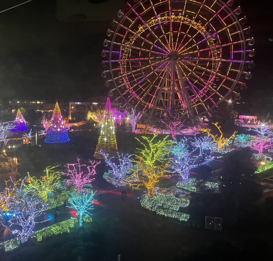 ちょうど夜の時間帯で、園内はイルミネーションがとにかく綺麗。