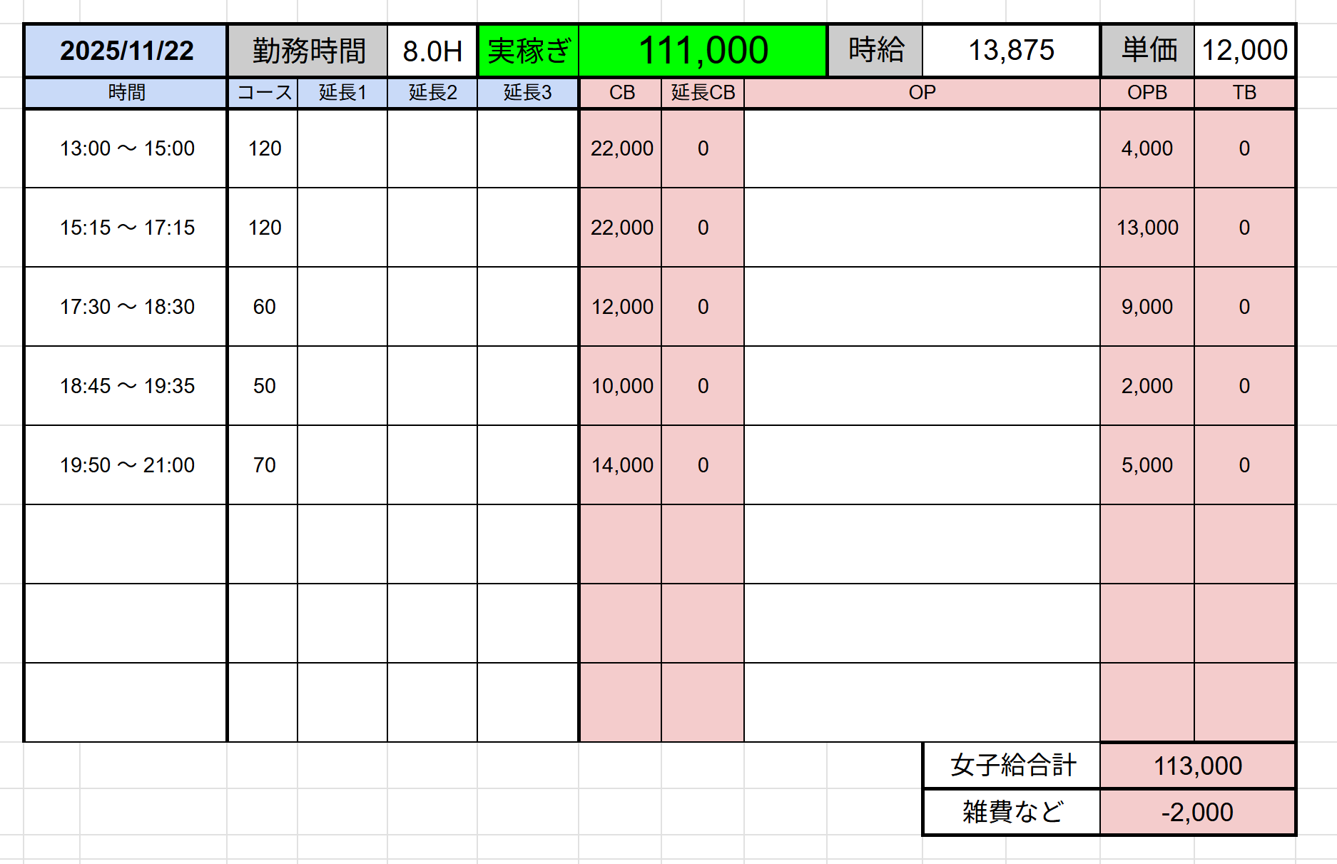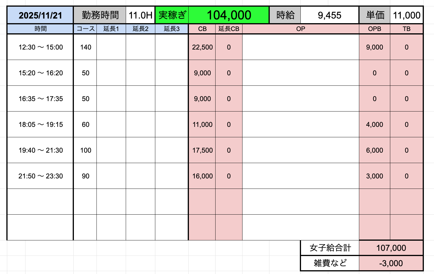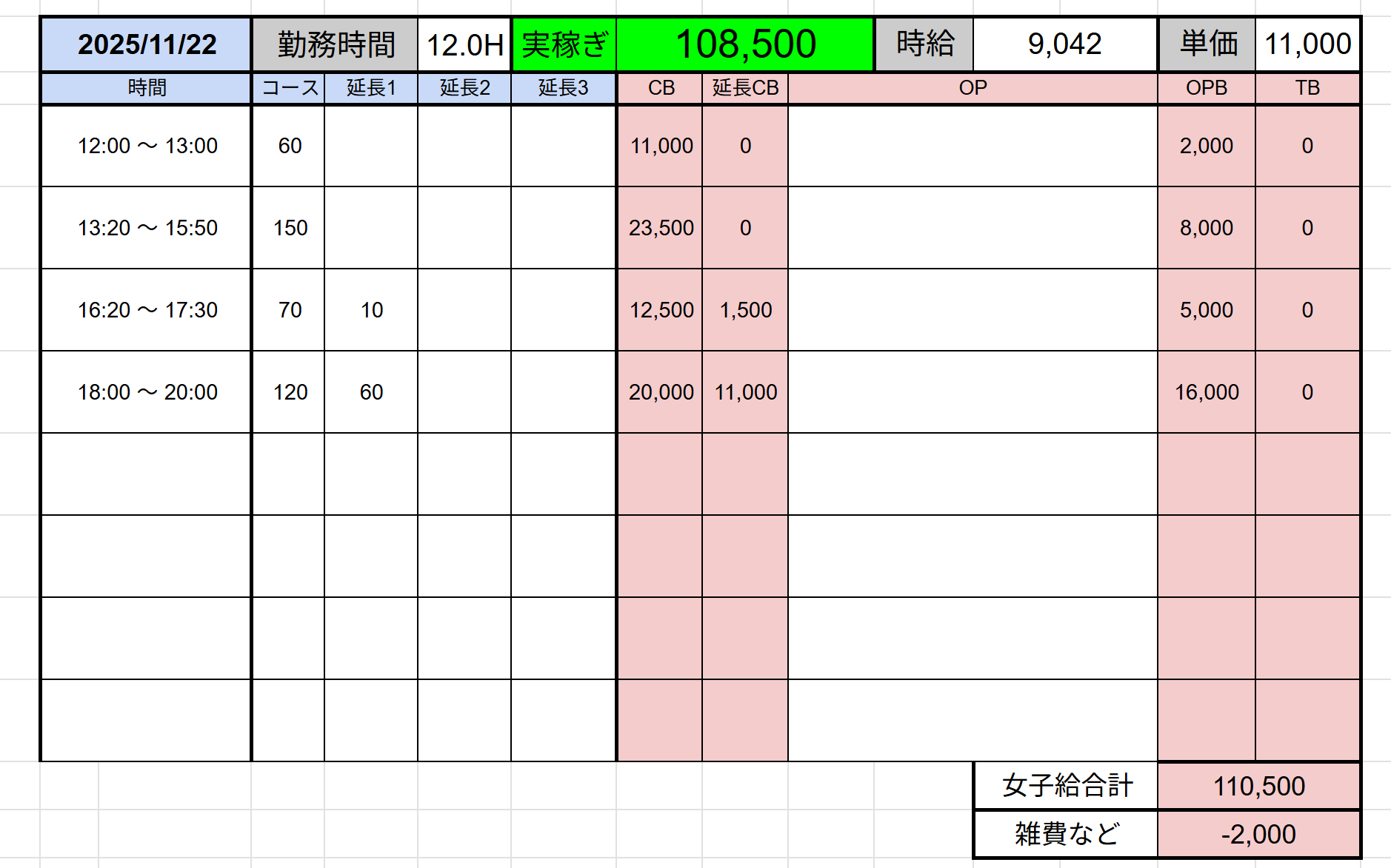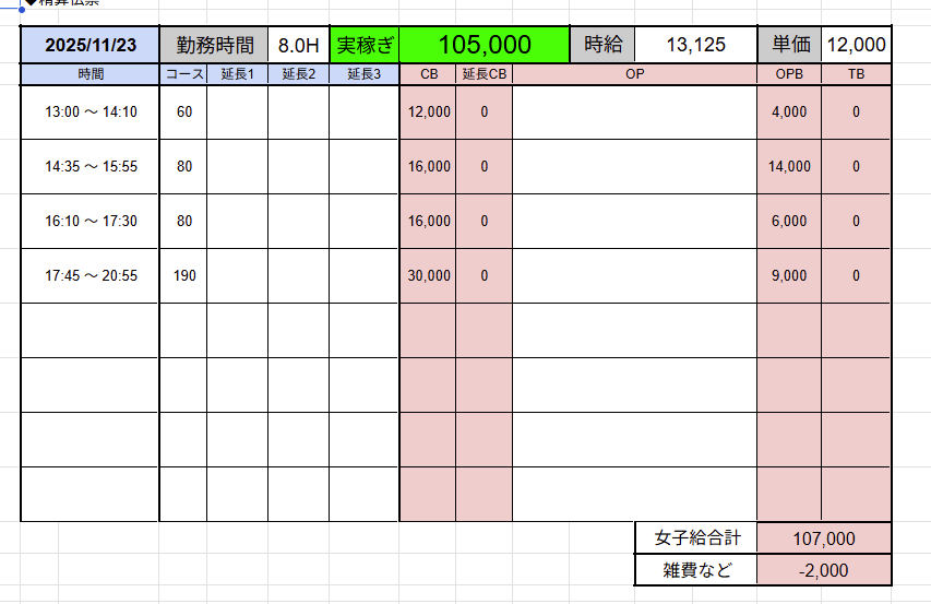 ↑在籍女性稼ぎ伝票✨