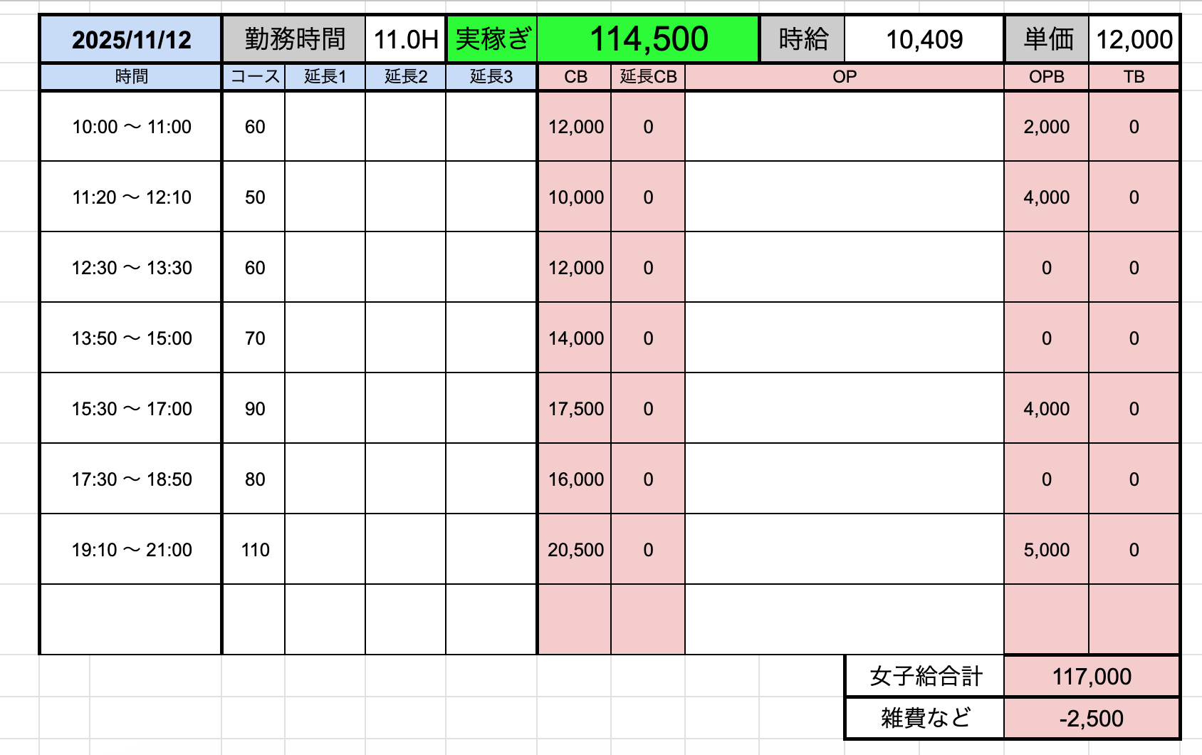 ↑在籍女性稼ぎ伝票✨