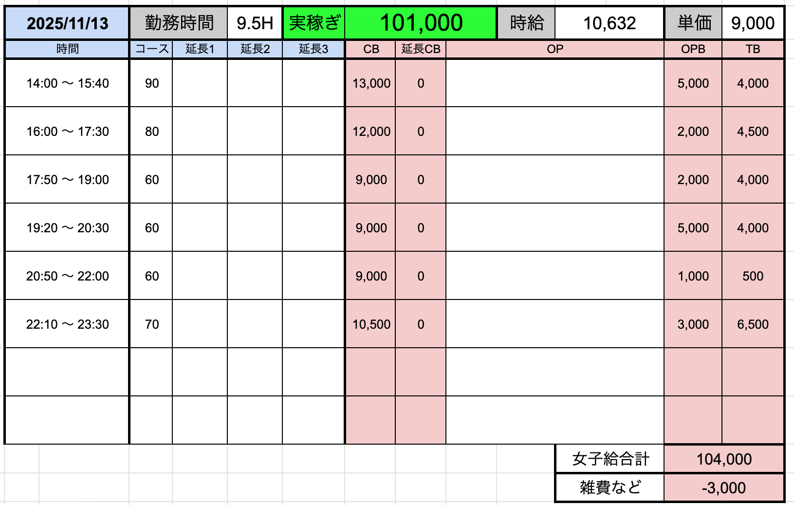 ↑在籍女性稼ぎ伝票✨