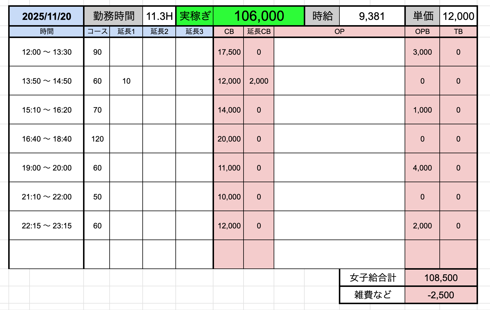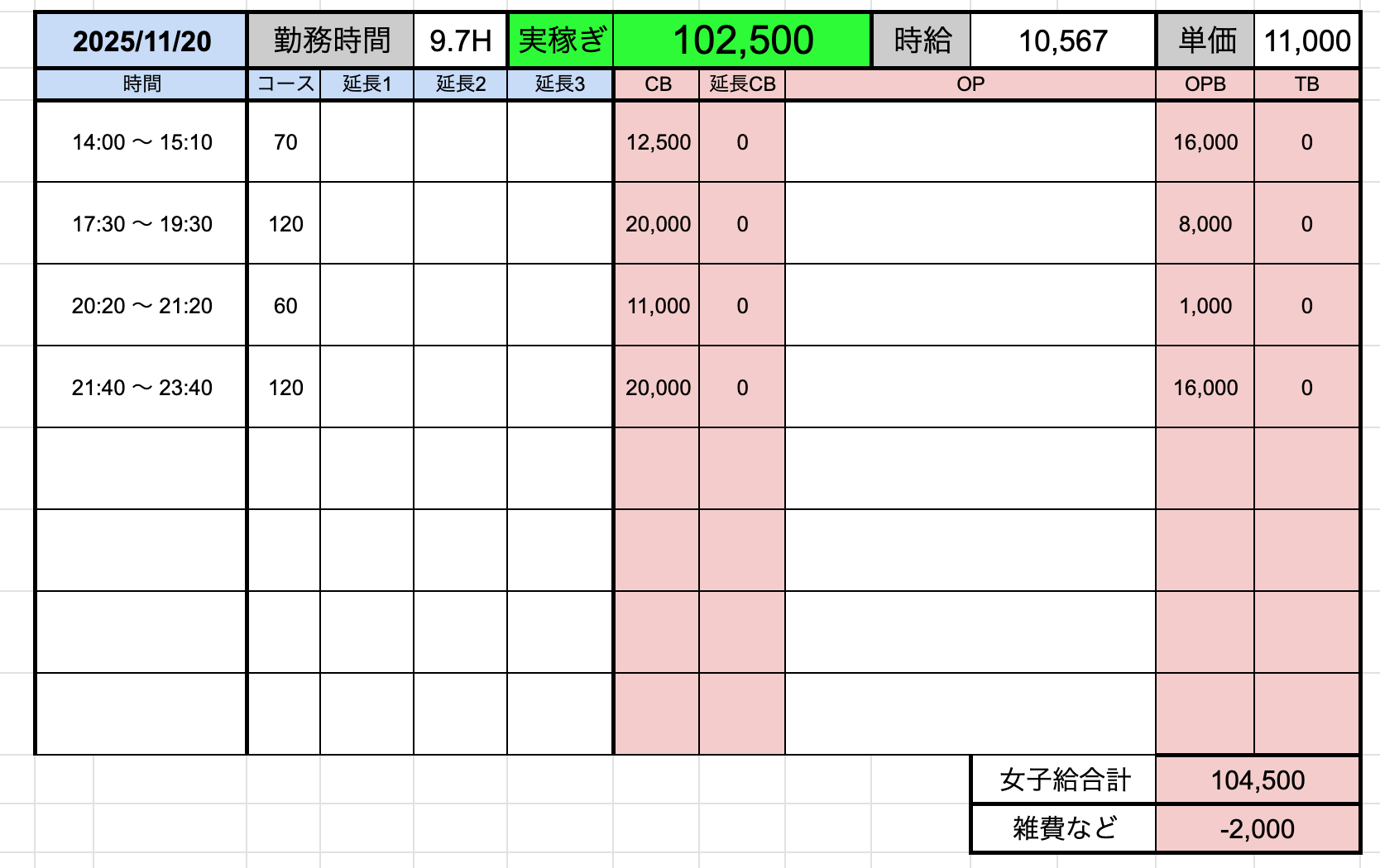 ↑在籍女性稼ぎ伝票✨