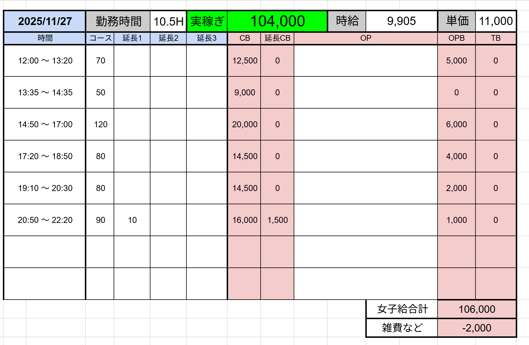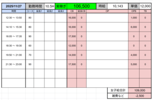 ↑在籍女性稼ぎ伝票✨