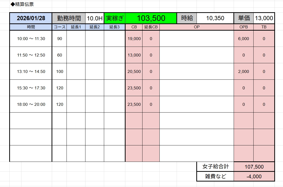 ↑在籍女性稼ぎ伝票✨
