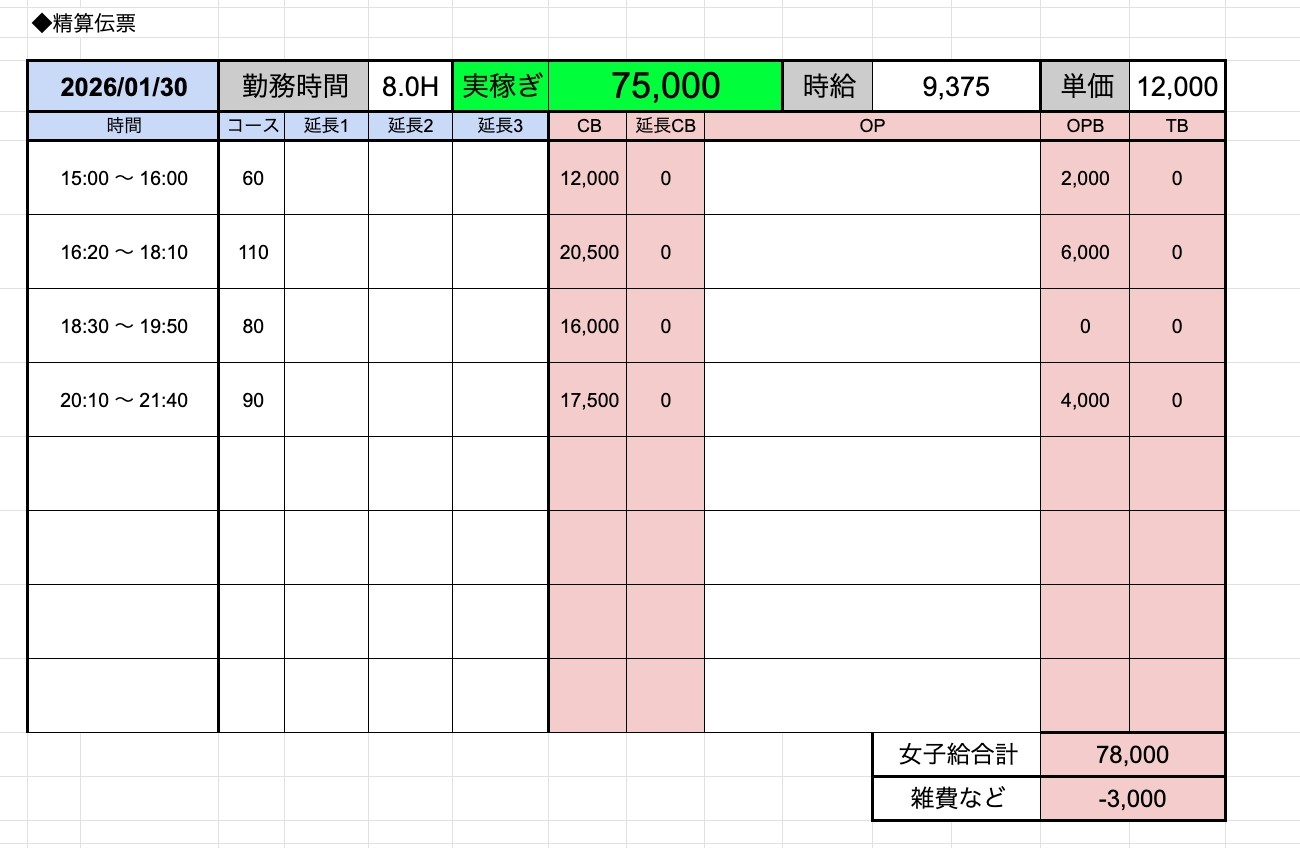 ↑在籍女性稼ぎ伝票✨