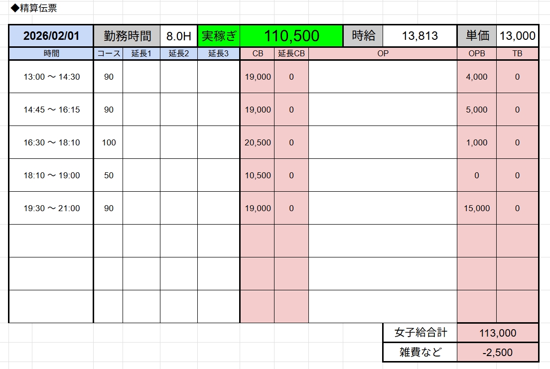 ↑在籍女性稼ぎ伝票✨