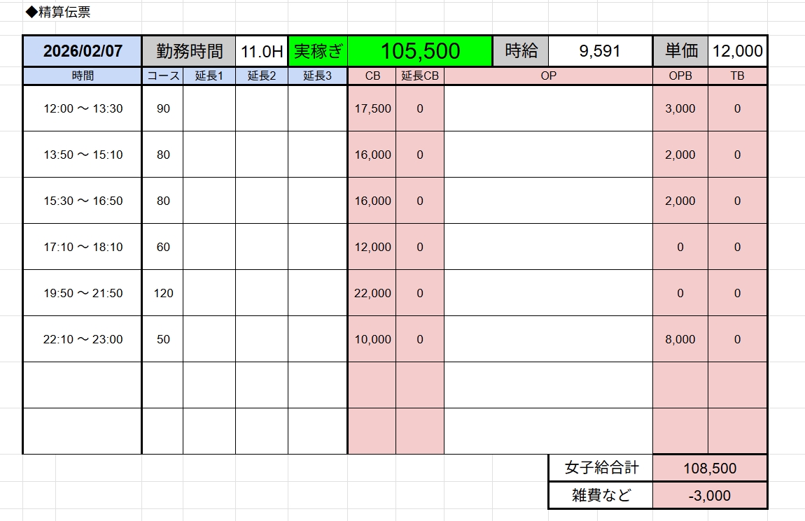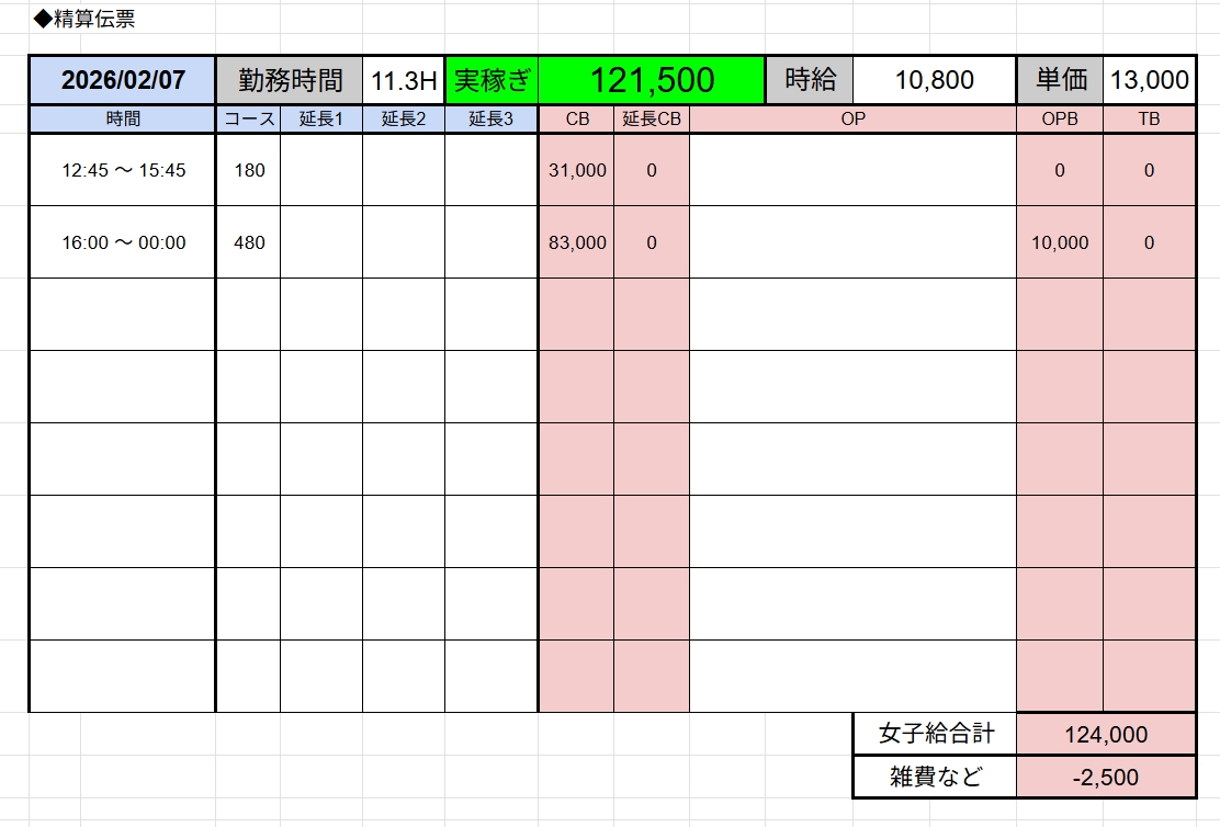 ↑在籍女性稼ぎ伝票✨