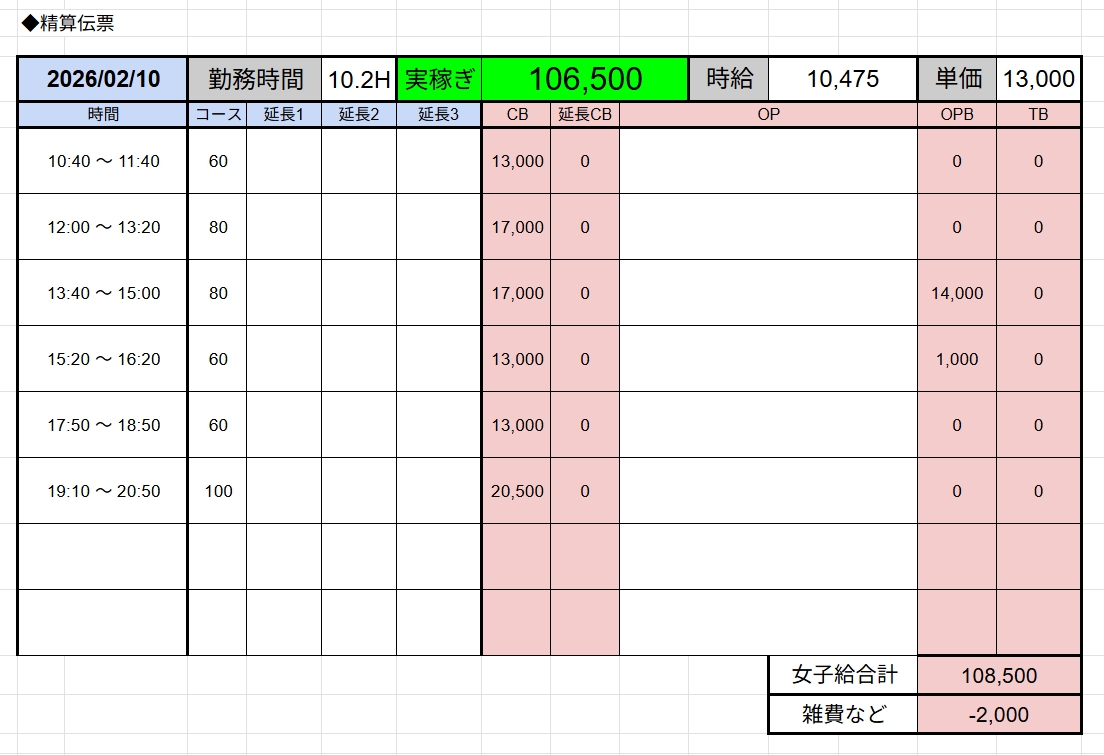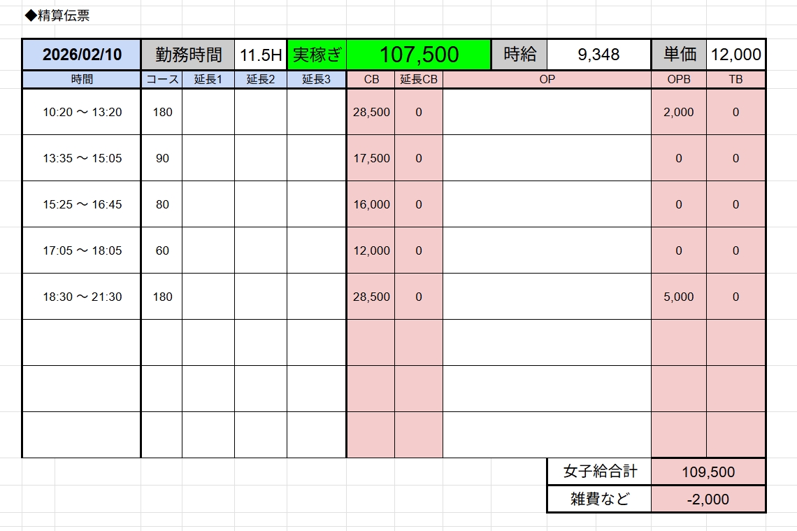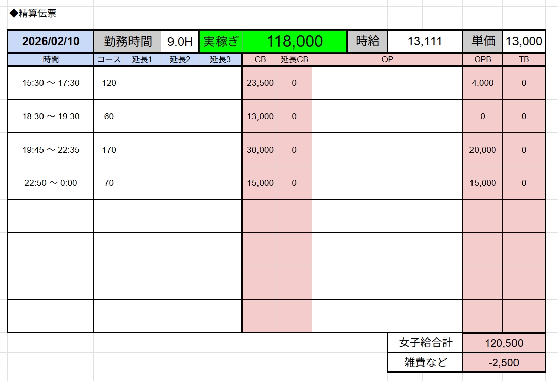↑在籍女性稼ぎ伝票✨
