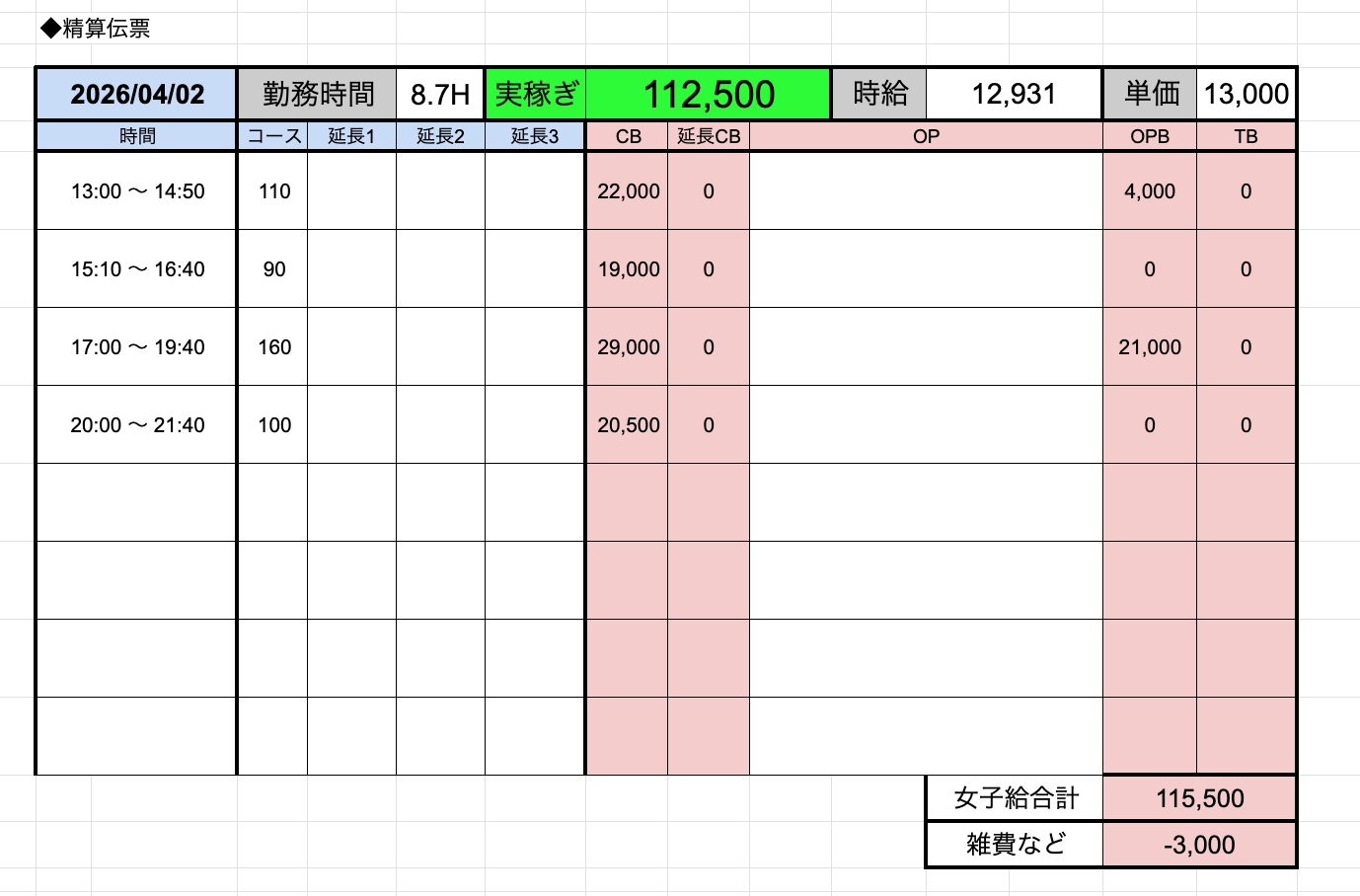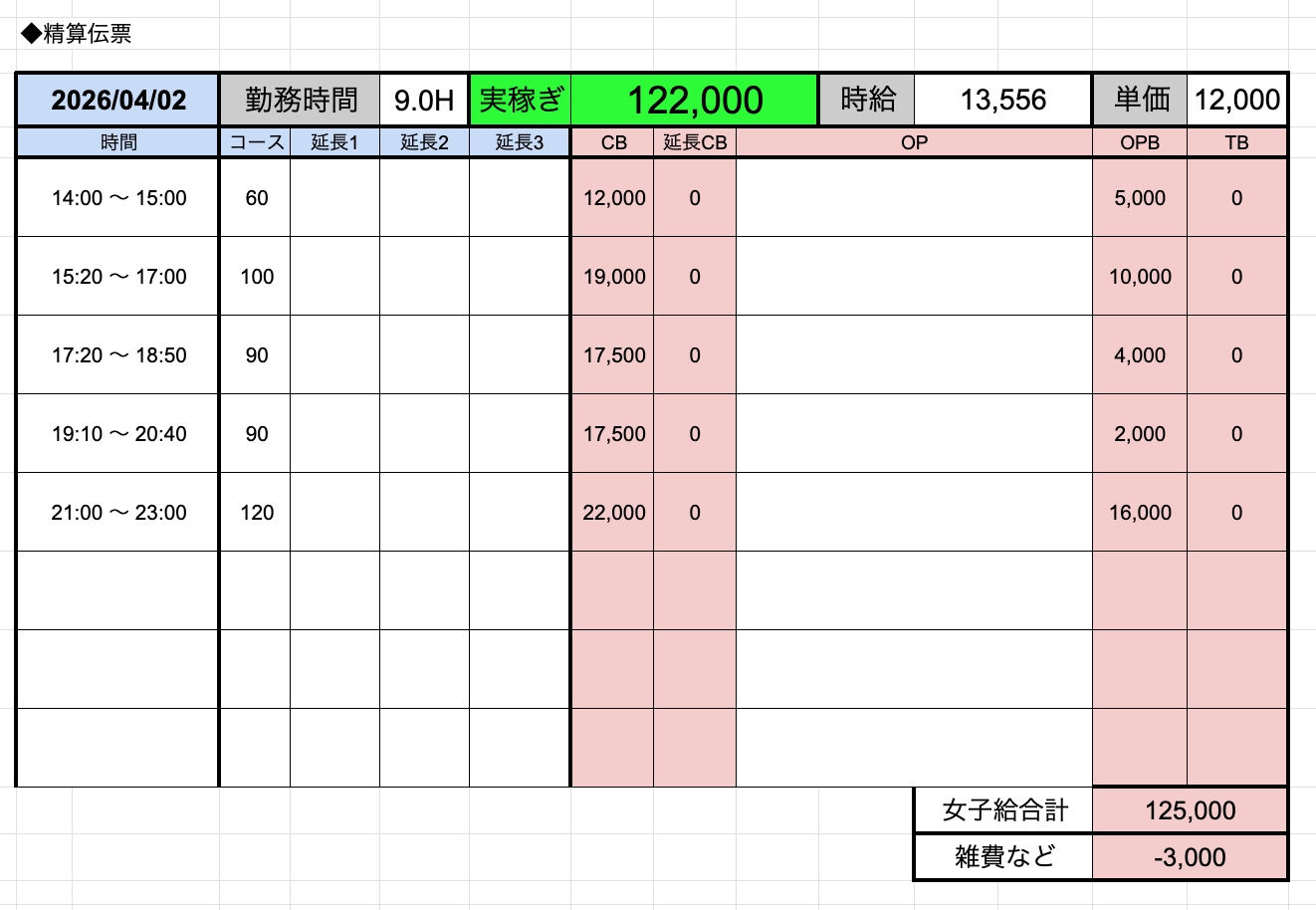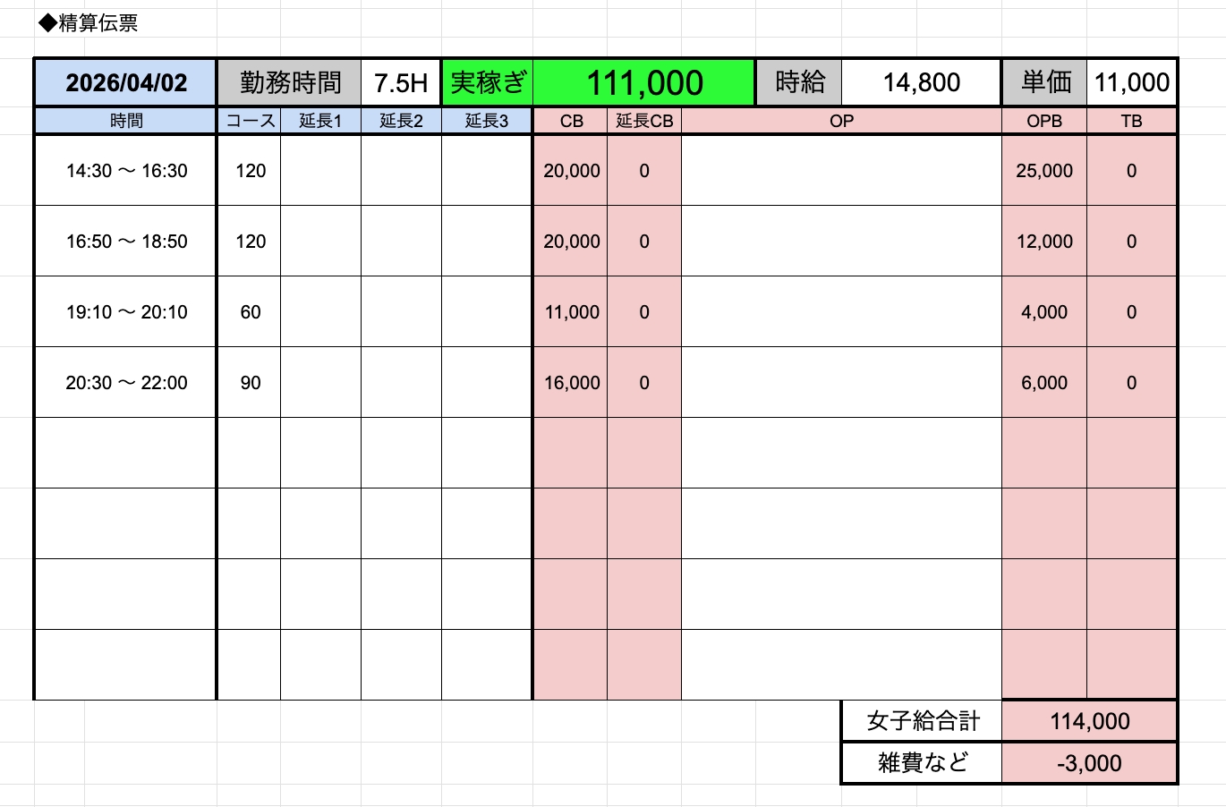 ↑在籍女性稼ぎ伝票✨