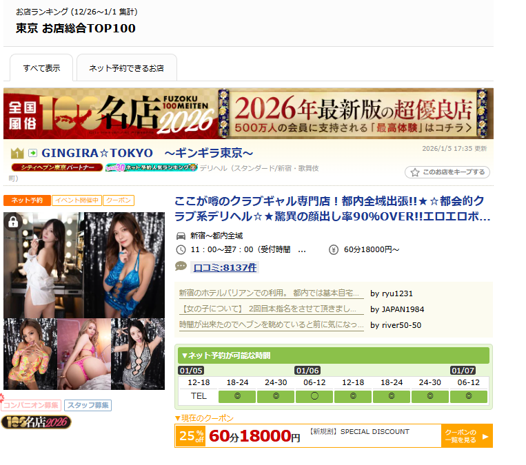 『東京 お店総合TOP100』 👑1位 GINGIRA☆TOKYO