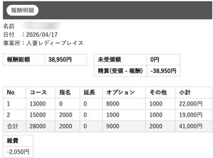 ※画像は4時間出勤の女性の給与の実例です。