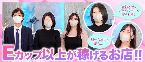 Eカップ以上の方大歓迎!!最低給料60分11,000円~スタート!! 他店で稼げなったEカップ以上の女性も当店で稼ぎが倍以上になった女性の前例も御座います!! 巨乳という個性を当店では最大限に活かせます!!