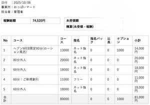 当店の昨日のリアル明細です