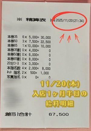 🪞11月20日!入店して1ヶ月半の給料明細大公開☆彡