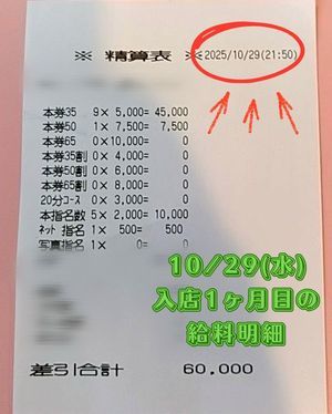 🪞10月30日!未経験で入店して10日目の給料明細大公開☆彡
