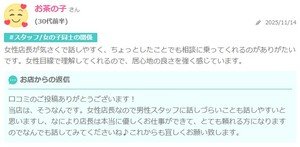 【口コミのご紹介】当店の女性店長についてのご投稿✨