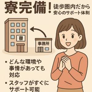 どんなに小さな悩みや不安でも、気軽にスタッフに相談できる環境を整えていますので、安心してお仕事に集中できます。