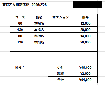 | 店舗名 | 東京乙女組新宿校 | |