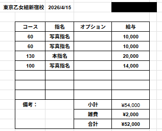 | 店舗名 | 東京乙女組新宿校 | |