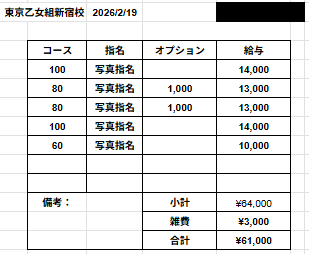 | 店舗名 | 東京乙女組新宿校 | |