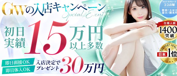補足事項 東京風俗No1の集客力で、他店より圧倒的に稼ぎやすい!入店祝い金も!体験しなくても給与5,000円保証※