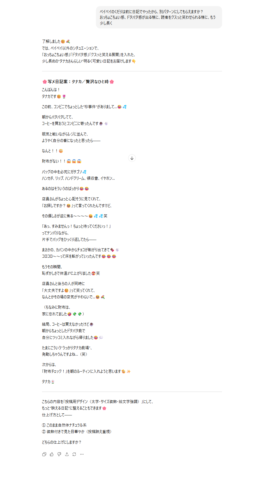 でも、「自分の心を介在してつくったプロンプト」から生成される文章は悪くないと思いますし、