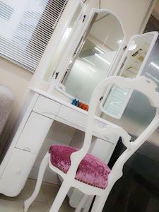 オフィスには三面鏡付きドレッサーもあります。お出かけ前のチェック、髪のセット等々お使いいただけます✨️もちろんヘアセットに必要なアイロン等も全て揃ってますし、専属ヘアメイクさんもおります♡