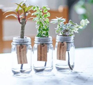 メリットとして、土の劣化による植え替えが不要、虫がつきにくい、室内の空気浄化機能が向上する。
