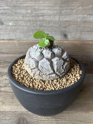園芸的な観賞価値を出すために塊根部のほとんどを土の上に出していますが、