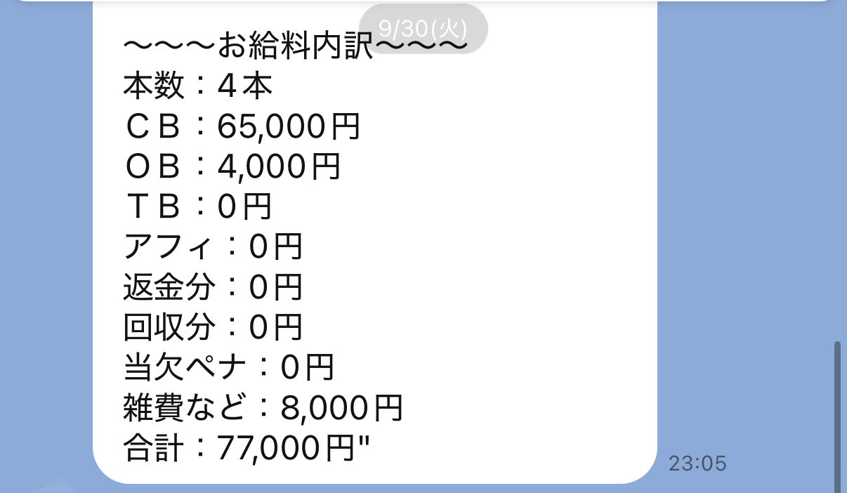 【お給料紹介】9月30日(火) 時給換算1万円以上のRちゃん