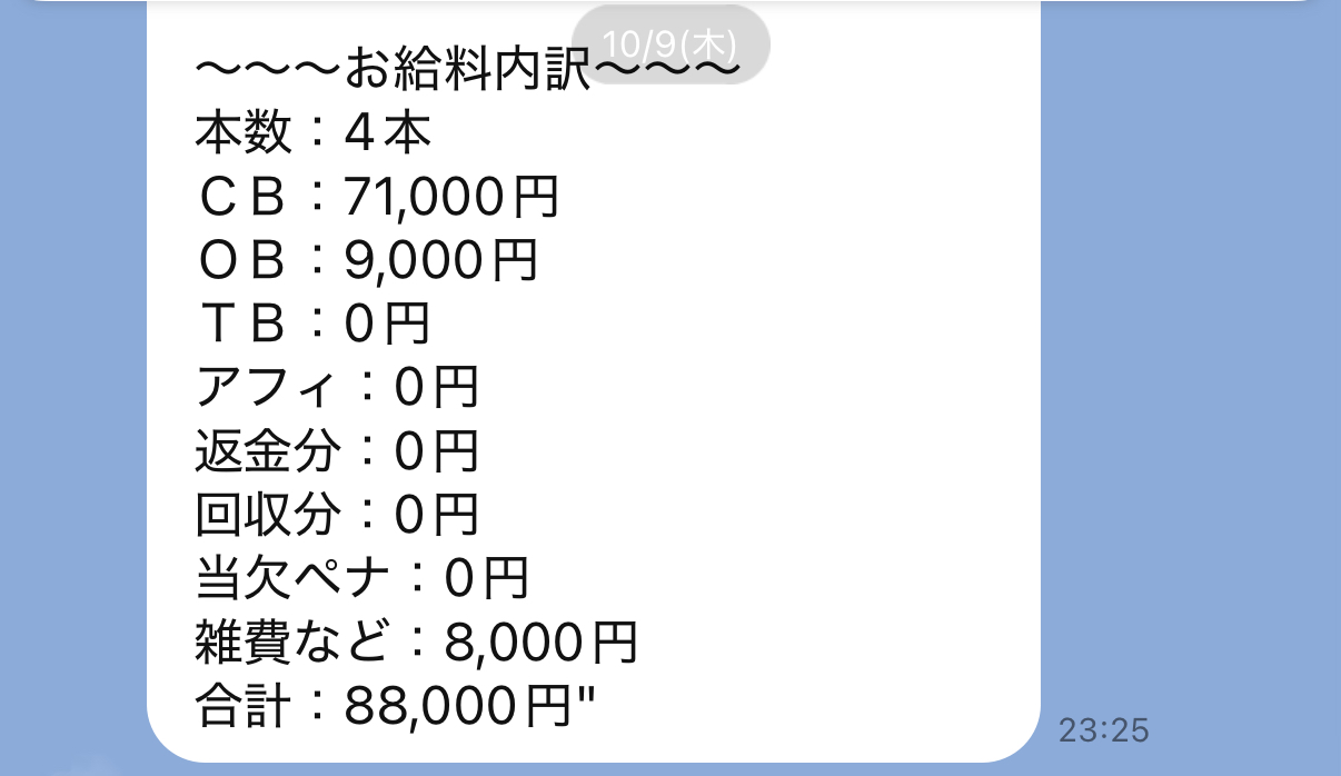 【お給料紹介】10月9日(木) 時給換算1万円以上のRちゃん