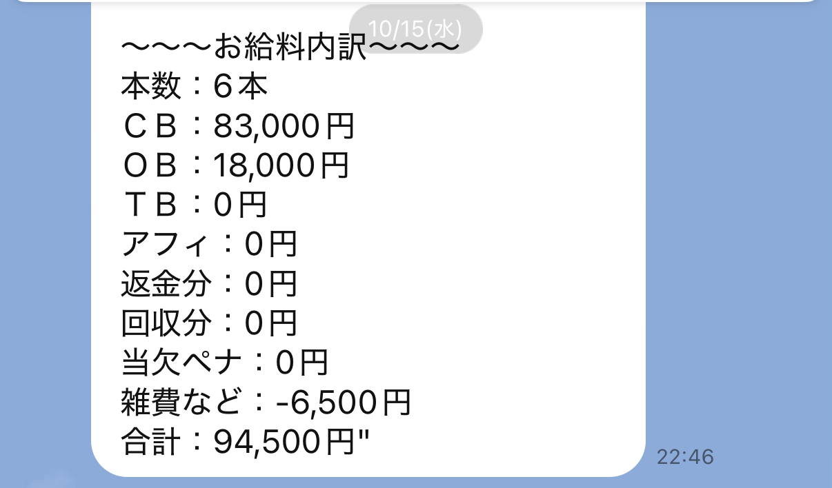 【お給料紹介】10月15日(水) 時給換算1万円以上のAちゃん