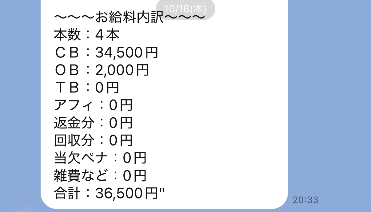 【お給料紹介】10月16日(木) 新人期間のHちゃん