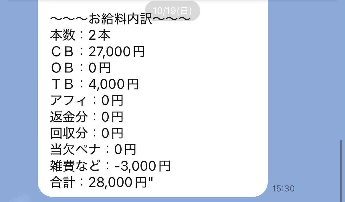 【お給料紹介】10月19日(日) 短時間出勤のKちゃん