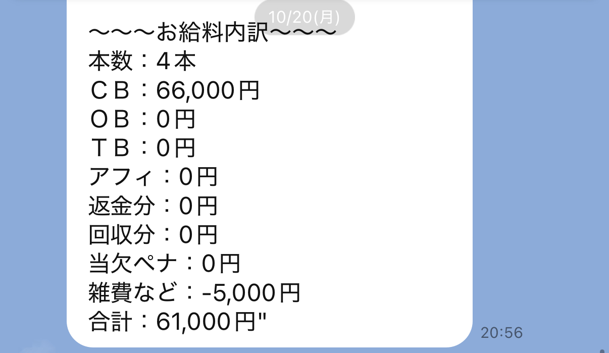 【お給料紹介】10月20日(月) 時給換算1万円以上のEちゃん