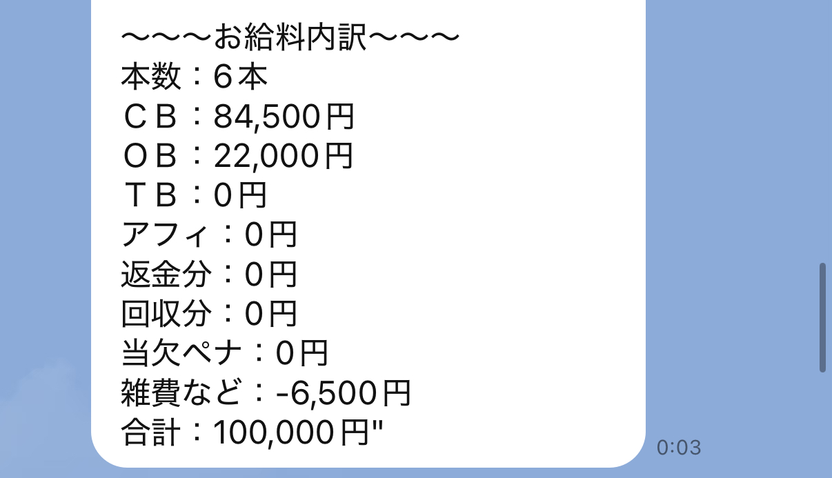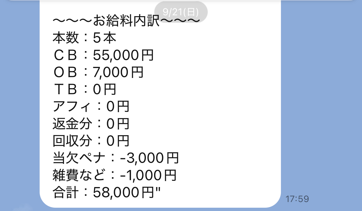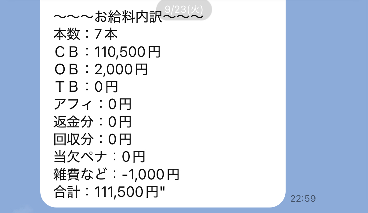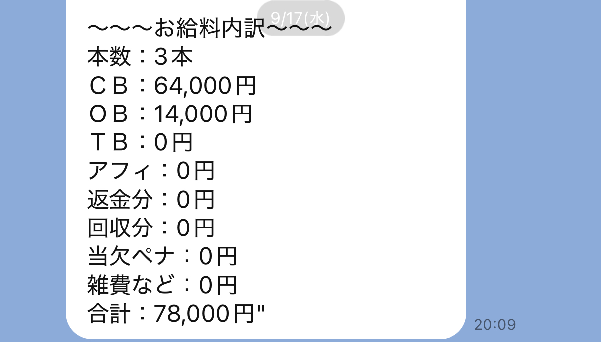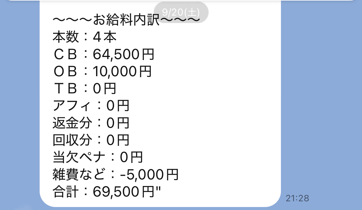 【お給料紹介】9月19日(金) 入店初日で10万円越えのRちゃん