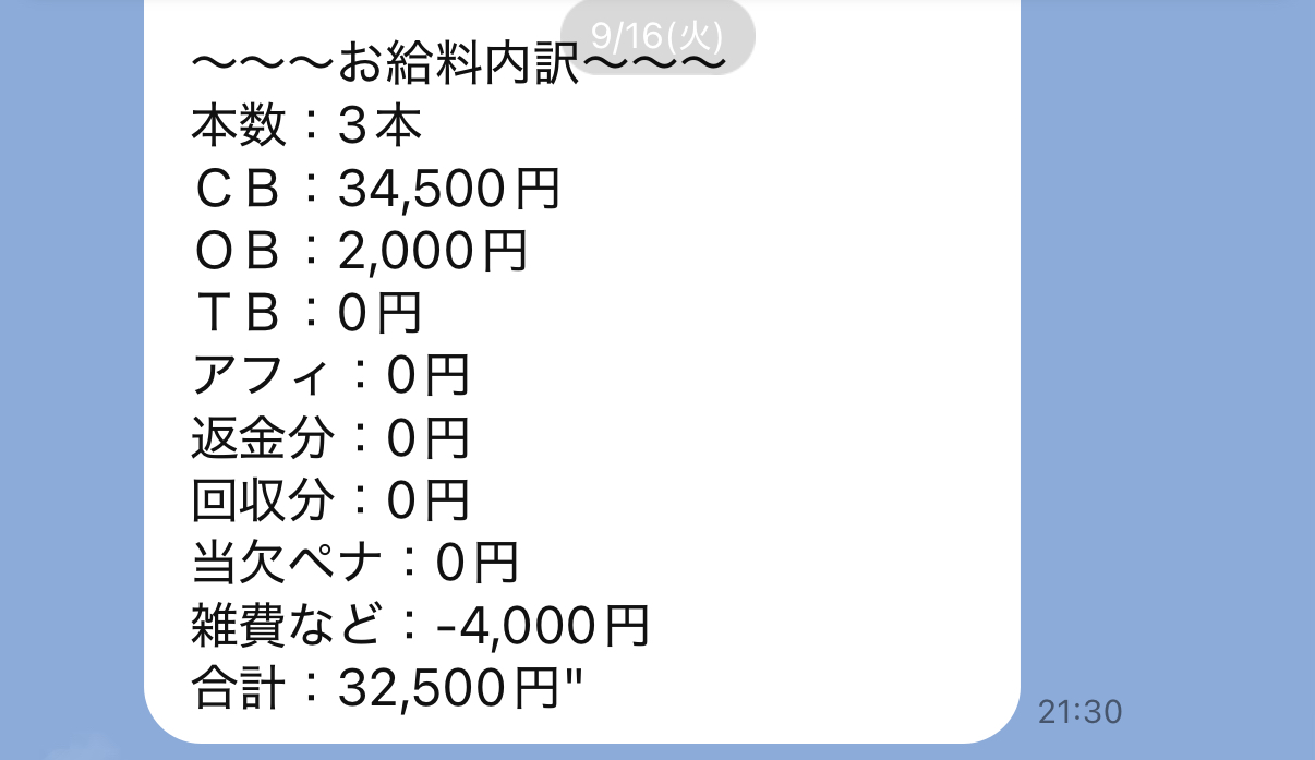 【お給料紹介】9月24日(水) 新人期間のWちゃん