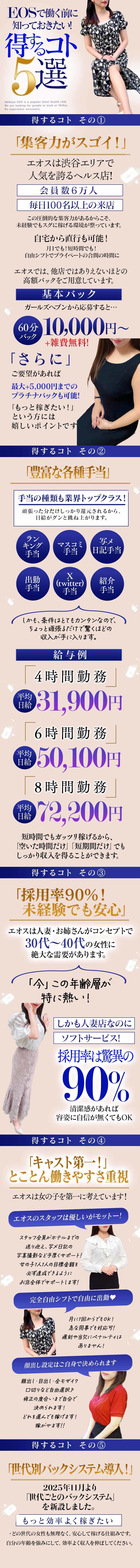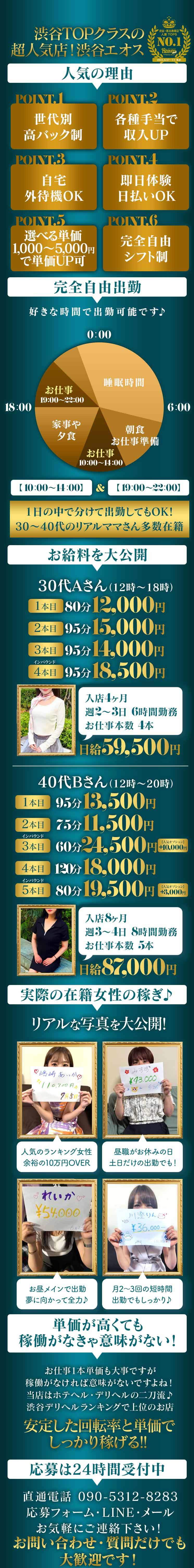 【即日体験で5万円以上!】渋谷エオスは採用率90%超★未経験・ブランクあり大歓迎!創業16年の信頼と集客力で安定高収入
