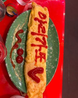 特に観光とかもしないので、ありがと🩷と書かれた卵焼きの写真をお見せします笑