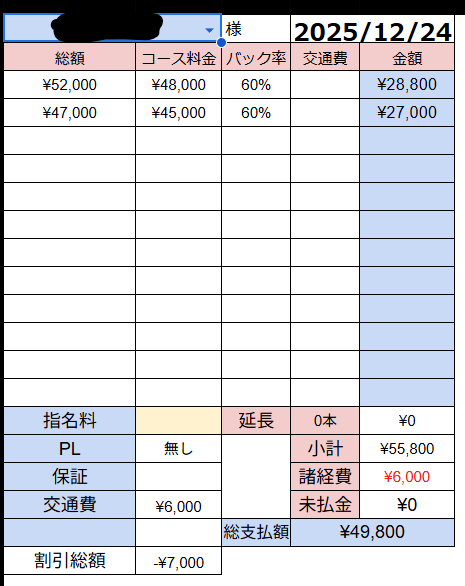 【給与明細大公開!】新人キャストが90分2つでこのお稼ぎです!