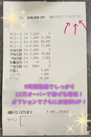 💎\ 給料明細 / 平日なのに13万オーバー!