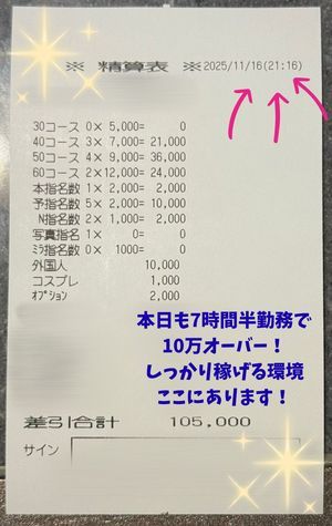 💎\ 給料明細 / 平日なのに13万オーバー!
