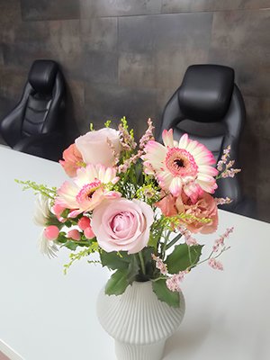 お店は恵比寿駅から徒歩3~4分ほどのオフィスや飲食店が立ち並ぶエリアです!エレベーターを降りるとワンフロアーになっており、入ってすぐのカウンターにはお花を飾っています(^^)