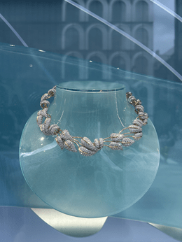 写真は銀座で見かけたネックレス。凄い巧みの技ですよね。あまりの輝きに、ついジーッと見つめてしまいました(笑)。