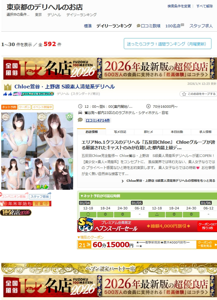 Chloe鶯谷・上野店 S級素人清楚系デリヘル